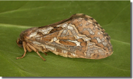 Wingspan 32-50 mm. Distinguished from its congeners by the conspicuously barred cilia of fore- and hindwing (MBGBI Vol 1). Larva feeds within roots of Bracken, over-wintering twice, also found in areas where Bracken does not occur, where the foodplant may be Red Fescue.
