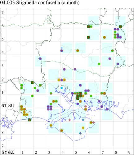 Common throughout much of the British Isles. In Hampshire and on the Isle of Wight mines are fairly common in all three vice-counties, notably at Botley Wood and Royston Woods HWT reserve in the south and around Fleet in the north. Wingspan 5-6 mm. Adults difficult to distinguish from other