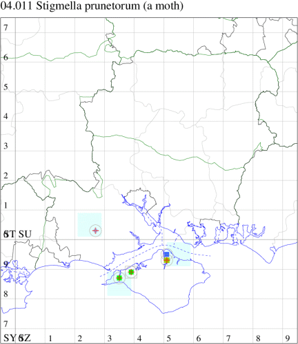 Nationally scarce (Nb) in woodland, downland and clifftops along the south coast and in the west. On the Isle of Wight, a few recent records from the north of the Island. In Hampshire there have been no acceptable records since 1900. Wingspan 4.3-4.7 mm. Adults difficult to distinguish from other