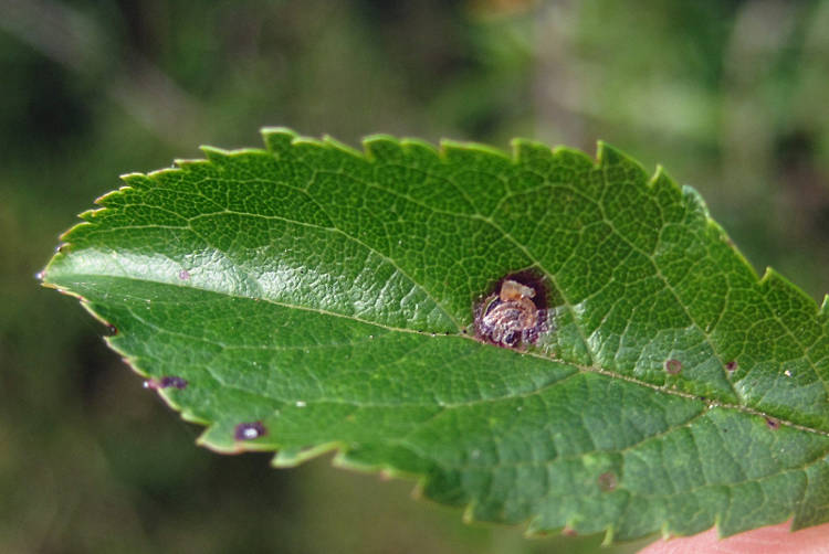 Stigmella species, and more frequently recorded in the larval stage, when mines are relatively easy to find where they are present. Larva mines leaves of Blackthorn, Wild Cherry and Dwarf Cherry, over-wintering as a pupa. The mines are described in the following link: