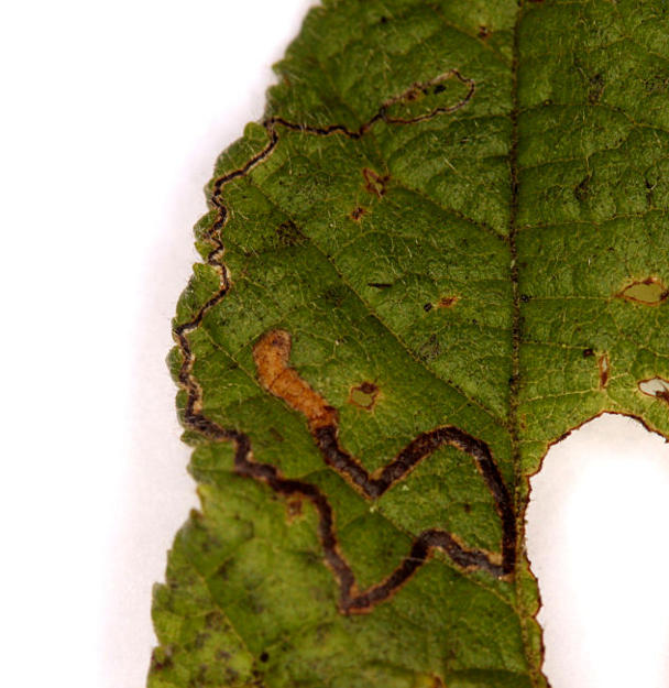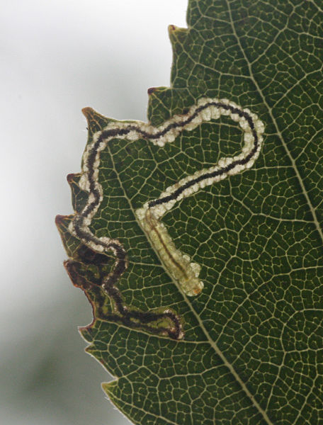 Common in hedgerows and woodland throughout much of the British Isles, but not in northern Scotland. In Hampshire and on the Isle of Wight widespread and common. Wingspan 5-6 mm. Dissection is required to identify the adult moth, unless bred. Larva mines leaves of Hazel and less frequently, Hornbeam, over-wintering as a pupa. Occupied mines can be common when looked for in appropriate habitat in June and July and again between September and November. The mines are described in the following link: