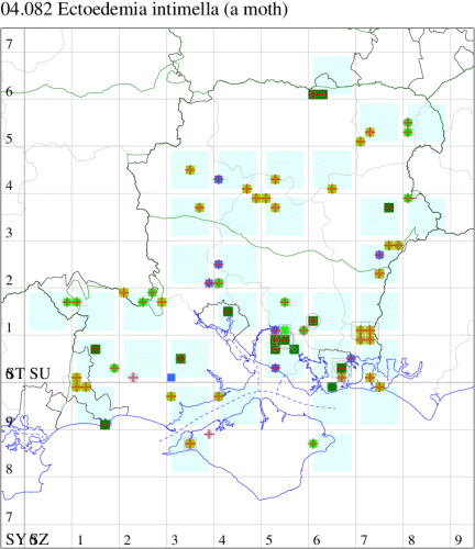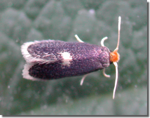 Local in damp woodland and marshes throughout England, less commonly in the north. In Hampshire mainly recorded in the larval stage, as a leaf mine on Sallow, but uncommon in north Hampshire and on the Isle of Wight. Wingspan male 5.3-6.3 mm, female 5.6-6.8 mm. Easily separated from most