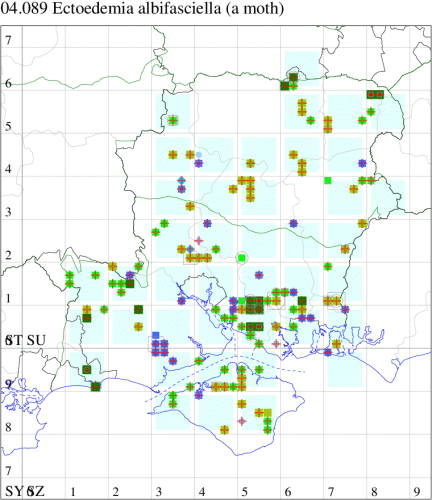 Common in woodland, gardens, orchards and parks throughout much of England and Wales and, in favourable years, southern Scotland. Widely distributed and fairly common in Hampshire and on the Isle of Wight. Wingspan male 5.2-6.4 mm, female 5.2-6.5 mm. The imago may be distinguished from