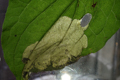 Cornus sanguinea. The mine starts as a short gallery along leaf edge, abruptly changing to a blotch, finally the larva cuts out an oval hole 5.5 to 7mm along the longer axis. Before the egg is laid the female makes several ‘practice’ slits, which helps to separate this from