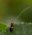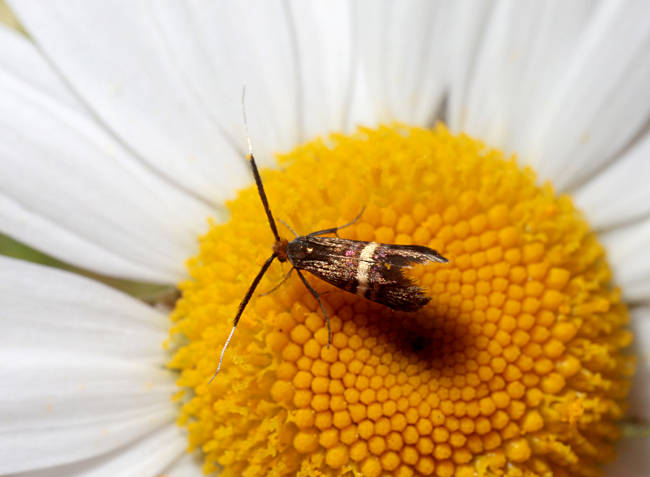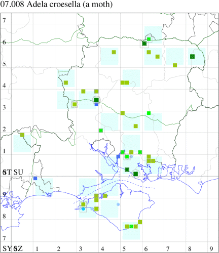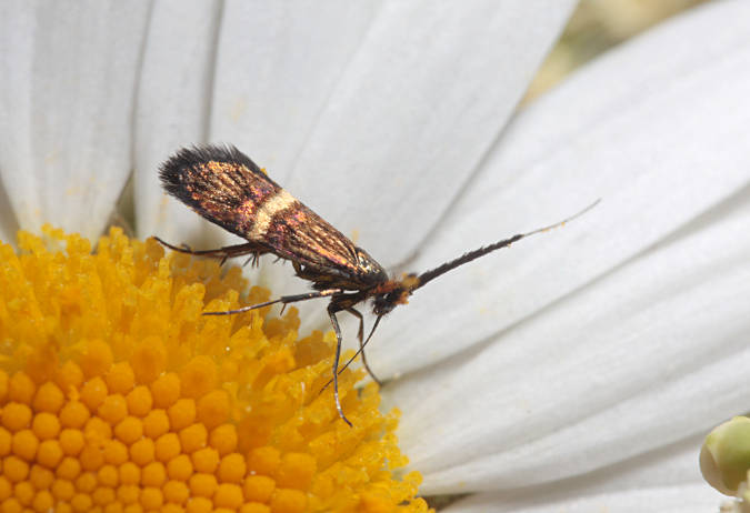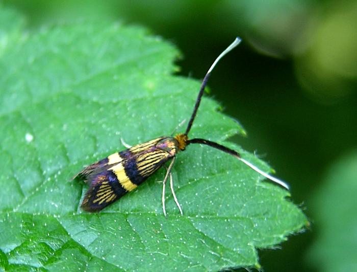 Local in woodland edges, downland, scrub and fens throughout much of England and Wales. In Hampshire and on the Isle of Wight very local, most often seen in daylight flying around hedgerows in suitable habitat in scattered locations across the county, although most common on the downland of central Hampshire south to Botley Wood, and west Wight; apparently absent from the New Forest. Wingspan 11-14 mm. The larva is primarily associated with the flowers and seeds of Wild Privet, subsequently feeding in the fallen leaves, living within a movable case.