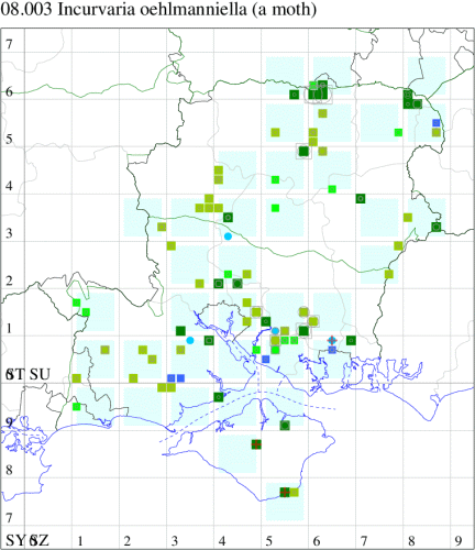 Common on heathland and moorland throughout much of the British Isles, on the Welsh and Scottish hills may be found up to 1000 m. In Hampshire fairly widespread, in damp woodland, where usually seen by day or at light, with only one record of a larval case being found in the county. First recorded from the Isle of Wight in 2014. Wingspan 12-15 mm. Imago most likely to be confused with