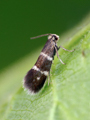 Local in scrub and heathland throughout much of Britain and Ireland. In Hampshire there are scattered records in the south and north-east of the county, notably at Botley Wood and at Fleet, but generally uncommon in the north of the county and on the Isle of Wight, although perhaps under-recorded since the extent of known records correlate with those areas in which the recording effort is concentrated. Wingspan 7-9 mm. Imago can be separated from other similar Incurvariidae by its small size, but often recorded in the larval stage, the mines of which are distinctive. Larva mines leaves of Birch, living within a movable case, subsequently feeding in the fallen leaves. The mines are described in the following link: