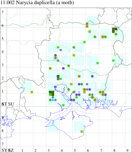 Common in woodland, gardens, orchards and parks throughout much of England and Wales, becoming more local northwards to southern Scotland. Locally common in Hampshire, where cases are found most often on old trunks of hawthorn, oak and yew. Recorded on the Isle of Wight in 1893 and 1950, but not since. Wingspan male 9-12 mm, female 7-10 mm. The adult moths are seen occasionally, but most records are of larval cases. Larva feeds on lichens growing on tree trunks and fence posts, living within a movable case.