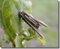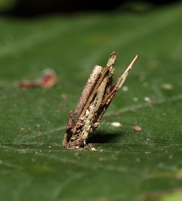 P. crassiorella. Larva feeds on various grasses, dead leaves, various lichens and decaying vegetable matter, living within a movable case; case length 8-12 mm.