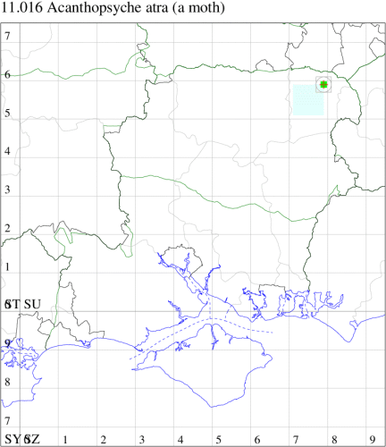 Rare (proposed as a future Red Data Book species) on heathland and moorland in three main areas of Britain - Berkshire, Hampshire and Dorset; North Wales, the Pennines and the Lake District; and the Highlands of Scotland. In Hampshire not seen for many years, until one at Castle Bottom NR on 2 April 2001. Not recorded from the Isle of Wight to date. Wingspan male 16-22 mm, female wingless. The adult moths are seen occasionally, but most records are of larval cases. Larva feeds on various grasses and Sallow, living within a movable case, over-wintering once or twice.