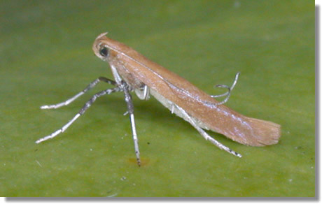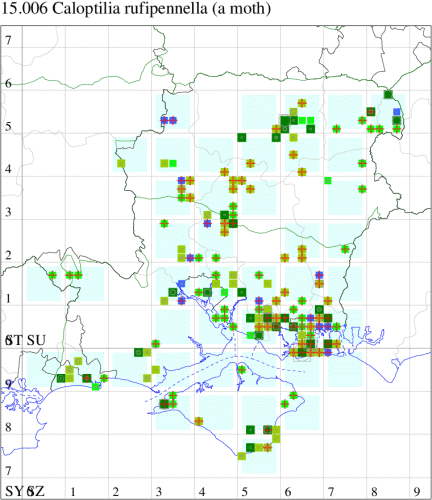 Common in woodland, gardens, parks and fens throughout much of Britain, a recent colonist, reported for the first time only in 1970. By the time of MBGBI 2 (1986), the population was centred in Scotland and eastern England, and it has evidently continued to spread westwards since that time. First recorded in south Hampshire in 1990 and 1991, and has now been found throughout Hampshire and the Isle of Wight. Wingspan 11-12 mm. Similar to