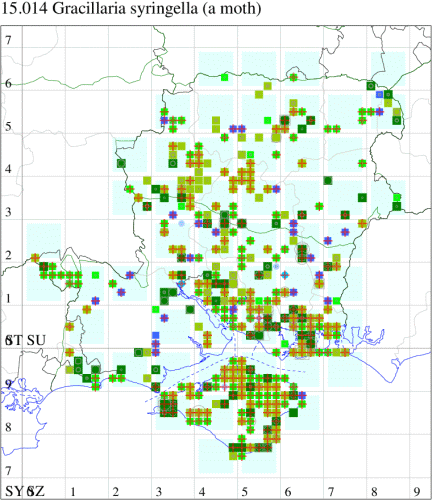 Common in gardens and woodland throughout the British Isles, as far north as Shetland. Widespread and common in Hampshire and on the Isle of Wight, where the distribution of records show continuous presence from April to September with only a small trough in June, indicating protracted emergence of the first generation. Wingspan 10-13 mm. Imago seldom encountered at light, and more likely to be recorded in the larval stage, when mines are relatively easy to find where they are present. Beware confusion with the far rarer