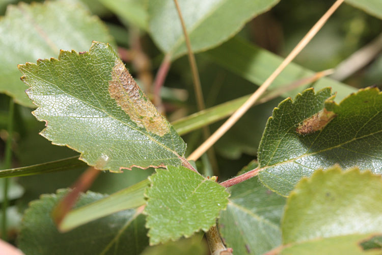 P. loganella, from which separated only by dissection of the genitalia. Imago seldom encountered at light, and more likely to be recorded in the larval stage, when mines are relatively easy to find where they are present. Larva mines leaves of Birch, subsequently living within a leaf-fold, over-wintering as a pupa in a cocoon.