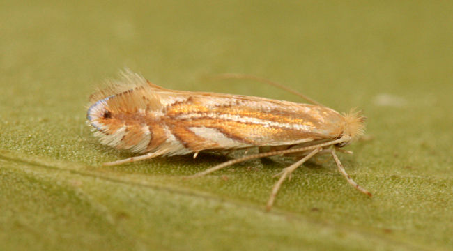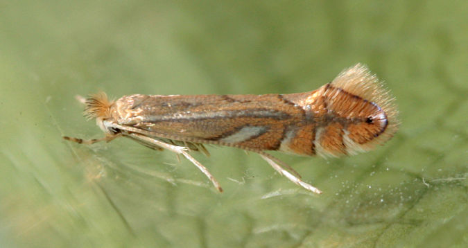 Common in oak woodland and areas with scattered oaks throughout much of the British Isles, except for the Northern Isles. In Hampshire and on the Isle of Wight widespread and locally common to abundant, but perhaps declining. Wingspan 7-9 mm. Similar to
