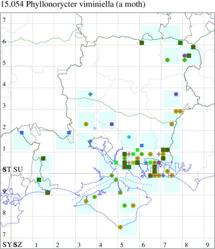Common in marshes, river-banks and other damp areas in England and Wales, with scattered records in Scotland; rare in Ireland. In Hampshire and on the Isle of Wight locally common in the south-east of the county and around Fleet, and probably under-recorded elsewhere. Wingspan 7.5-8 mm. Imago fairly regular at light, but more frequently recorded in the larval stage, when mines are relatively easy to find where they are present. Larva mines leaves of smooth-leaved Salix species, such as Osier and Crack Willow, has also been recorded on Aspen, over-wintering as a pupa in a cocoon.