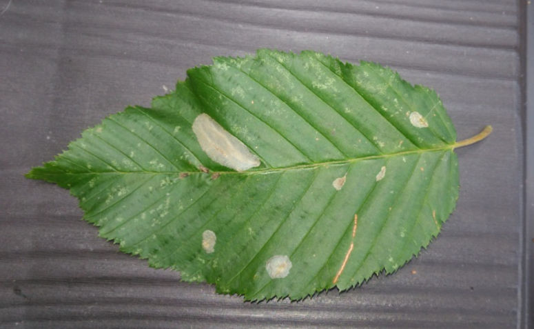 Local in woodland in south-east England up to Northamptonshire, with isolated records elsewhere from the south-west and Welsh borders (MBGBI Vol 2). Probably under-recorded in Hampshire, where the extent of known records correlate with those areas in which the recording effort is concentrated, with the first record from the Isle of Wight coming in 1996. Wingspan 7.5-9 mm. Imago not often seen at light, and more frequently recorded in the larval stage, when mines are relatively easy to find where they are present; in Hampshire and on the Island, almost all records are of the leaf mines, hence the sparseness of the flight-time graph. Larva mines leaves of Hornbeam, over-wintering as a pupa in a cocoon.