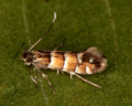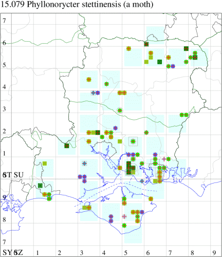 Common in damp woodland throughout much of England and Wales, and parts of western Scotland. Probably under-recorded in Hampshire or on the Isle of Wight, where the extent of known records correlate with those areas in which the recording effort is concentrated. Wingspan 6.5-7.5 mm. Imago similar to