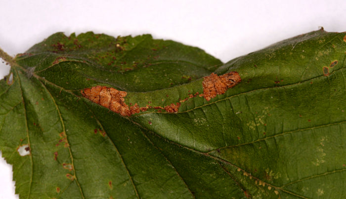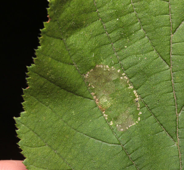 P. nicellii the first pair of strigulae often touch, forming a third angulated fascia (MBGBI Vol 2). Imago seldom encountered at light, and more likely to be recorded in the larval stage, when mines are relatively easy to find where they are present. Larva mines leaves of Hazel, over-wintering as a pupa in a cocoon.