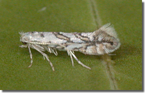 P. platanoidella, but differs in having the second chevron sharply angled with its apex extended as a dark-bordered yellow line to the third chevron; the rudimentary first chevron at the base of the wing contains more yellowish brown scales than either of the other two species (MBGBI Vol 2). Imago relatively uncommon at light, and more likely to be recorded in the larval stage, when mines are relatively easy to find where they are present. Larva mines leaves of Sycamore, over-wintering as a pupa in a cocoon.