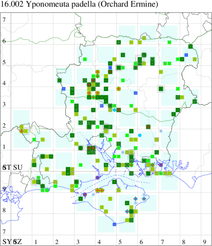 Common in hedgerows and scrubland throughout the British Isles. In Hampshire and on the Isle of Wight widespread and sometimes common, especially as larvae. Wingspan 19-22 mm.