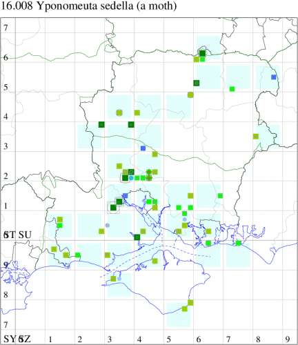 Y.padella. Larva feeds on Orpine, living gregariously within a silken web, over-wintering as a pupa.