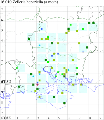 Local wherever the foodplant occurs, throughout much of the British Isles. In Hampshire widespread but rather uncommon; there have been no recent records on the Isle of Wight. Wingspan 10-15 mm. Larva feeds on Ash, living within a silken case, often several together.