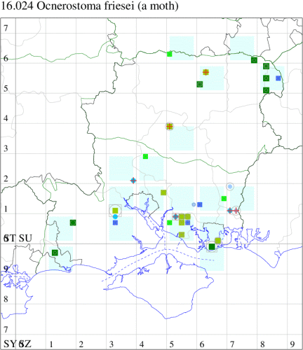 Local in pine woodland throughout much of England and Scotland. In Hampshire the majority of records are from the south of the county, but apparently increasing, or perhaps increasingly recorded, with no less than nine records in 2007. Not recorded from the Isle of Wight to date. Wingspan 8-10 mm. A small and nondescript pale grey moth, very similar to