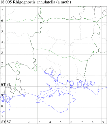 Nationally scarce (Nb) on rocky coasts of the British Isles, except between Hampshire and Lincolnshire. Not recorded in Hampshire or on the Isle of Wight to date. Wingspan 16-21 mm. Larva feeds on Common Scurvygrass, beneath a silken web.