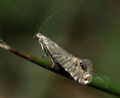 G. thrasonella has a diagnostic elongate coppery black mark at tonus, which include three silver dots (MBGBI Vol 2). Larva believed to feed within stems of various species of Rush, although the exact foodplant is uncertain.