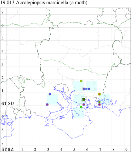| Hayling (SU70) | 22/08/2000 | one | J R Langmaid, I R Thirlwell, R J Dickson, A M Davis | Larval feeding signs |