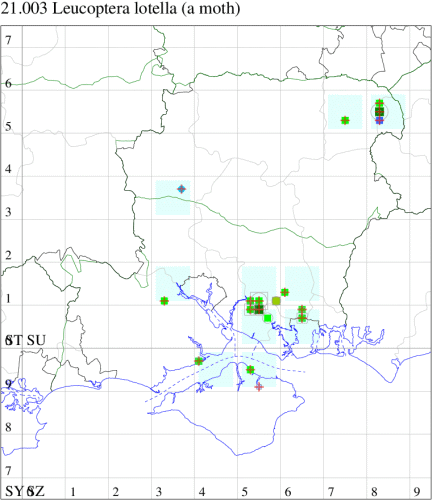 Nationally scarce (Na) on dry downland, and in marshes and other damp areas, in south-east England, Yorkshire and western Ireland. In Hampshire and on the Isle of Wight only regularly recorded in and around Botley Wood and Southwick in the south-east of the county, and very rare elsewhere. Wingspan 5-6 mm. Adults easily overlooked, and not particularly common at light, and more frequently recorded in the larval stage, when mines are relatively easy to find where they are present. Larva mines leaves of Bird's-foot Trefoil and Greater Bird's-foot Trefoil, over-wintering as a pupa.
