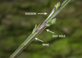 Laburnum, and also has been reported on Dyer's Greenweed; over-winters as a pupa.