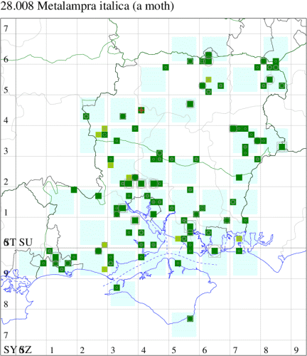 An adventive species, which is spreading rapidly. On 17 August 2003, a worn specimen was found in a moth trap in a garden in Devon. The species had not previously been recorded outside Italy. Another specimen turned up in the same garden on 7 August 2004, and towards the end of July that year three specimens were found in and around a house at Welwyn, Hertfordshire, with one to a lighted window at Studham, Bedfordshire, on 3 July 2006. In Hampshire recorded for the first time at Over Wallop in August 2011. By 2016 there had been 19 reports, which had risen to over 100 three years later. It is now widespread across mainland Hampshire, and recorded from the Isle of Wight for the first time in 2020. Wingspan 13-14 mm. A similar species, M. cinnamomea, which occurs widely on the near continent and which is perhaps a more likely candidate to stray to the UK, has not occurred; neither species is prone to migration, and the origins of the British M. italica remain a mystery. Larva feeds within dead wood.