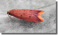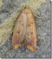 Naturalised and increasing, through accidental introduction in garden plants from Australia, throughout much of southern England, north to Lancashire; until recently only known from south-west England, this is a species which appears to have undergone a rapid range expansion. Since 1997, recorded frequently in Fleet, and since 2002 increasingly common along the south coast. Wingspan 13-18mm. The pinkish orange termen make this an unmistakable species. Larva feeds on fallen leaves and leaf litter. The pRDB3 status often indicated for this species is a misnomer and should be ignored.