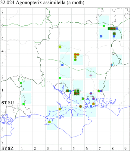 Local on heathland and in open woodland throughout much of Britain; rare in Ireland. In Hampshire widespread wherever Broom is found, but there have been no recent records from the Isle of Wight. Wingspan 15-21 mm. Most likely to be confused with