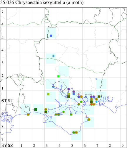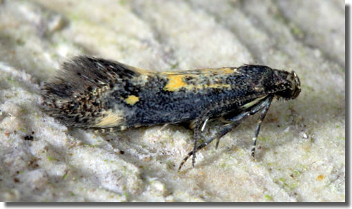 Local on waste ground, farmland and other open areas throughout much of the British Isles, but absent from the Northern Isles. In Hampshire and on the Isle of Wight still reasonably common along the coast in the south-east of the county and on the Island, but remains very scarce in north Hampshire. Wingspan 8-10 mm. The fuscous imago has pale yellow spots, but is seldom encountered, and the species is more likely to be recorded in the larval stage, when larvae may be obtained by sweeping the foodplant. Larva mines leaves of Goosefoot and Orache.