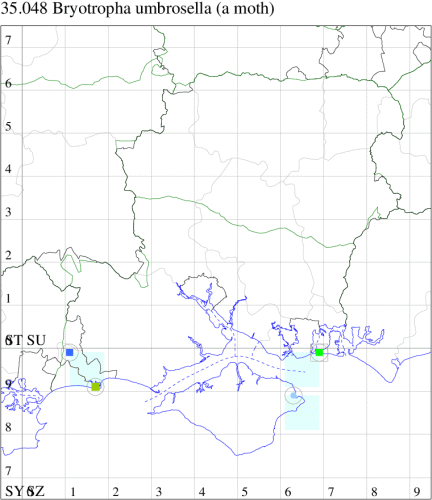 Nationally scarce (Nb) on coastal sand-dunes and, rarely, dry sandy areas inland throughout much of the British Isles, but absent from western Scotland, the Inner and Outer Hebrides, Orkney and Shetland. In Hampshire recorded recently only from Hayling Island in 2005. Not recorded from the Isle of Wight to date. Wingspan 9-11 mm. Differs from the other black species