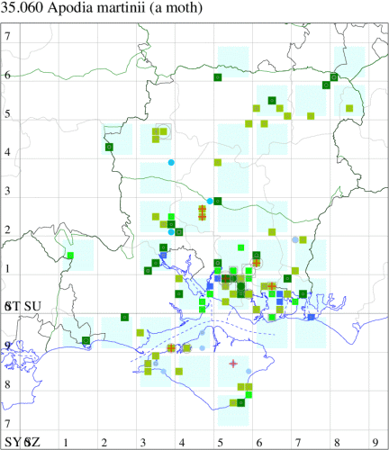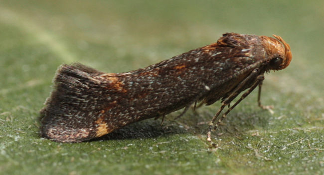 Local in damp meadows, open downland and saltmarshes throughout much of England and Wales. In Hampshire mainly confined to the south-east, very rare elsewhere in the county and on the Isle of Wight. Wingspan 9-12 mm. Flies in late afternoon. Characterised by a ferruginous-orange streak at tornus and outwardly oblique streak beyond on costa, often connected by scales of similar colour forming a Z-shaped fascia (MBGBI Vol 4 part 2), but these markings are sometimes obscure, in which case identification is possible only by dissection of the genitalia. Larva feeds within seedheads of Common Fleabane, Ploughman's-spikenard and Sea Aster.