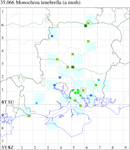 Local in scrubland, unimproved grassland and heathland throughout much of the British Isles. In south Hampshire, widely distributed from Holmsley Inclosure in the west to Oxenbourne Down in the east, with a significant population in Botley Wood; in north Hampshire, recorded once, at Wildhern in July 1998; on the Isle of Wight, recorded on a few occasions on the south-west coast, but not since 1978. Wingspan 10-12 mm. Larva feeds within roots and lower stems of Sheep's Sorrel.