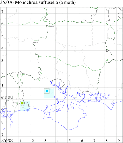 Rare (proposed as a future Red Data Book species) in bogs, fens, marshes, river-banks, damp areas and saltmarshes in parts of northern Wales and southern England, with records north to Yorkshire. In Hampshire recorded only from Matley Bog in the New Forest, where it has been described as common, but there are no records on the county database since 1984. Not recorded from the Isle of Wight to date. Wingspan 10-12 mm. One of several similar, rather nondescript gelechiids, which can only be reliably identified by dissection of the genitalia. Larva mines leaves of Common Cotton-sedge.