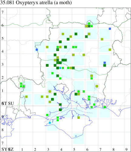 Local on downland, rough ground, dry pastures and in woodland clearings throughout much of England and Wales; rare in Ireland. In Hampshire widespread and common; on the Isle of Wight, first recorded at Cranmore in July 2001. Wingspan 11-13 mm. The most likely confusion species is