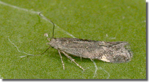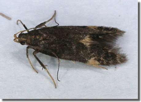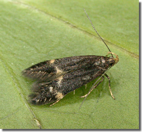 E. atrella) labial palpus, but often reliably separated only by dissection of the genitalia. Larva feeds within stems of Perforate St John's-wort and Hairy St John's-wort, over-wintering in a case made from leaf fragments.