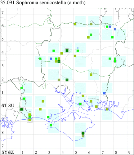 Local in grassland and open woodland throughout England and Wales. The distribution in Hampshire mirrors those areas in which trapping effort is concentrated, and the moth is probably more widely distributed than the records suggest; very infrequently recorded from the Isle of Wight. Wingspan 18-19 mm. The combination of remarkable, tufted labial palps and white costal streak is shared by the superficially similar