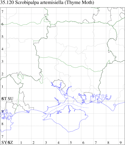 Nationally scarce (Nb) on sandhills, dry limestone slopes and machair (vegetated shell-sand) throughout much of the British Isles, where suitable habitat exists. Not recorded in Hampshire or on the Isle of Wight to date. Wingspan 10-12 mm. Being one of the smallest members of the family, although variable in wing markings, can usually be identified without reference to genitalia (MBGBI Vol 4 part 2). Larva feeds on Wild Thyme, living within a silken web.