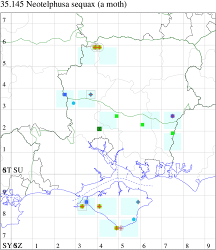 | Tennyson Down (SZ38) | 24/05/2018 | - | S D Bevan, R J Heckford | Larval |