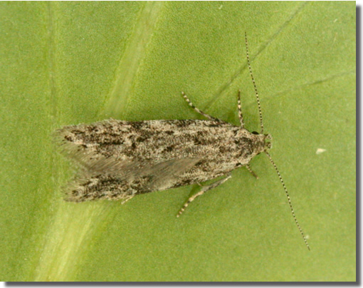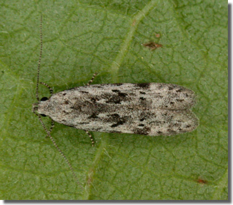 C. decorella. Larva feeds on Birch and Alder, living within a spun or rolled leaf, and over-wintering as a pupa.