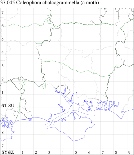 Endangered (proposed as a future Red Data Book species) on calcareous grassland and dry sandy areas in eastern England. Not recorded in Hampshire or on the Isle of Wight to date. Wingspan 8-10 mm. Day-flying. Larva mines leaves of Lesser Stitchwort and Field Mouse-ear, living and feeding within a movable case; case length 6 mm.