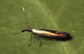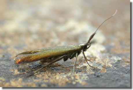 C. frischella only by dissection of the genitalia. Larva feeds within seedheads of Red Clover, living within a movable case; case length 6 mm.