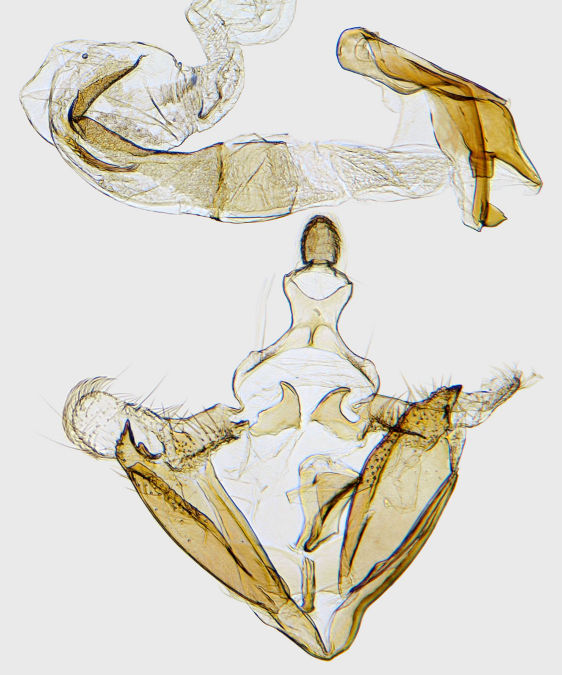 Coleophora, imagines are virtually impossible to identify without recourse to dissection, and the larvae, which live in cases of characteristic form and which can sometimes be found on the foodplant, may be easier to identify by comparison against a reference collection. Larva feeds on seeds of Black Bindweed, living within a movable case.