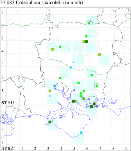 Local on waste ground, farmland and rough ground throughout much of the British Isles, but not in the Highlands or Islands of Scotland. In Hampshire widely distributed in small numbers, mainly inland; recorded once on the Isle of Wight, to light at Ventnor in August 1987. Wingspan 13-16 mm. Imago very similar to